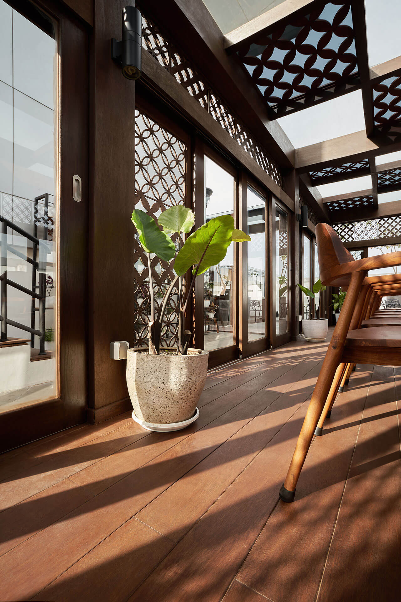 The space was conceptualised in alignment with biophilic principles, the idea that human beings are intrinsically drawn to nature. It was essential that the rooftop garden was able to mimic natural, outdoor spaces. XYLO worked in collaboration with the architect and contractors to design a space that highlights the beauty of natural wood grains, transforming the area into a haven of comfort and warmth.