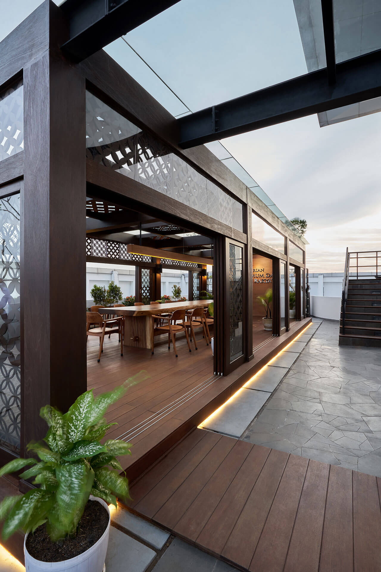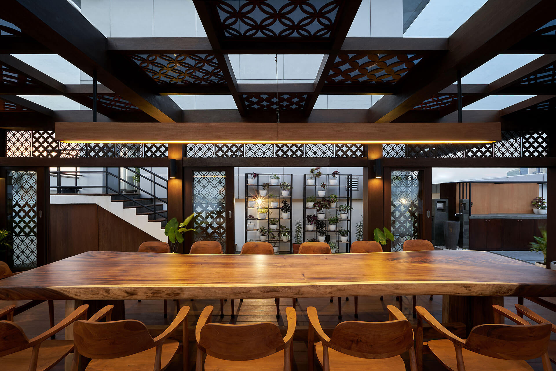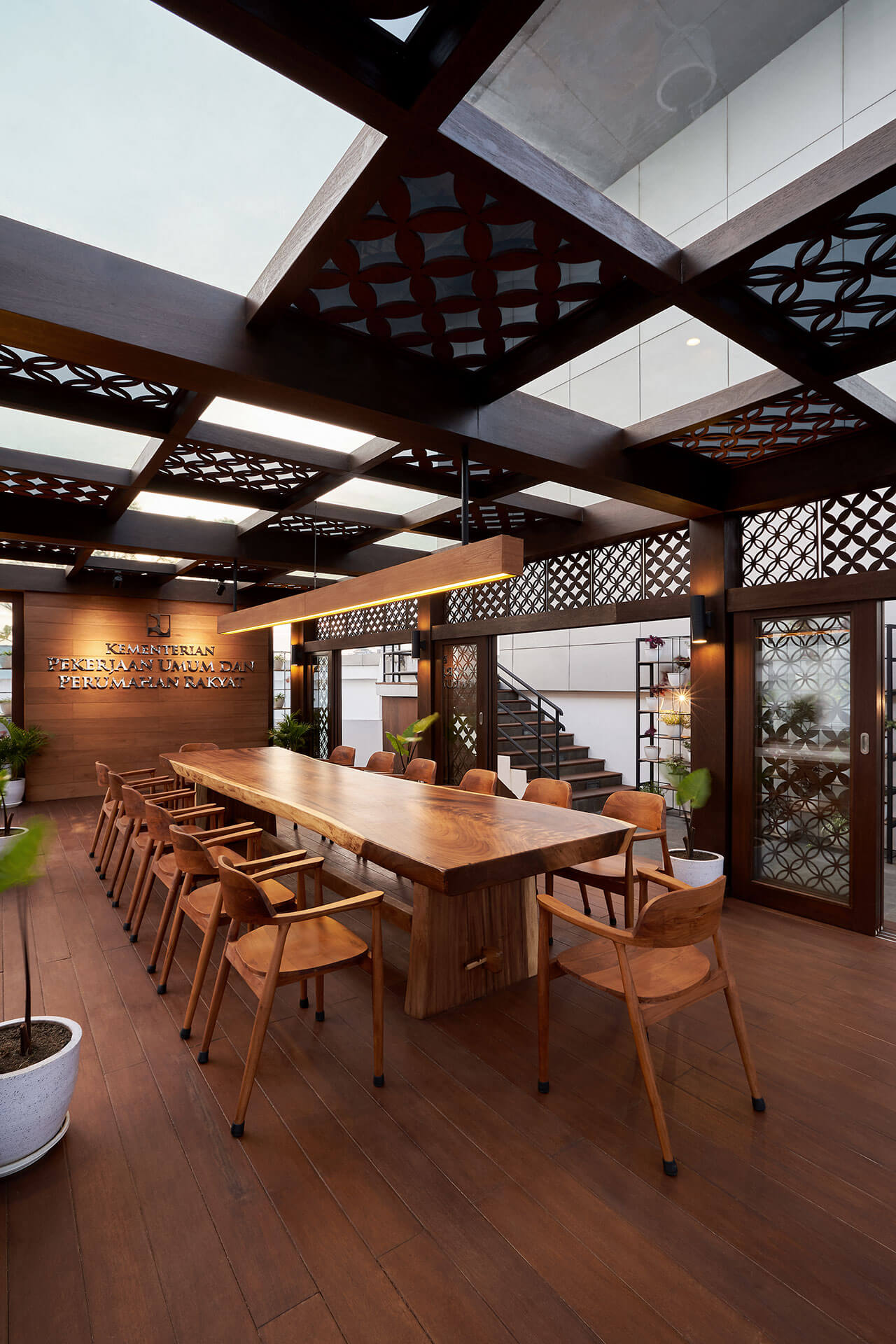The project was completed within two weeks and highlights that wood can be easy to assemble and construct when using thoughtful modular design that starts from the manufacturing process itself. The wood used is strong and durable, with exceptional performance even when exposed to the humid tropical weather, varying temperatures, and rainfall in Jakarta. The space encourages the respect and appreciation of natural beauty, bringing natural materials into an urban context.