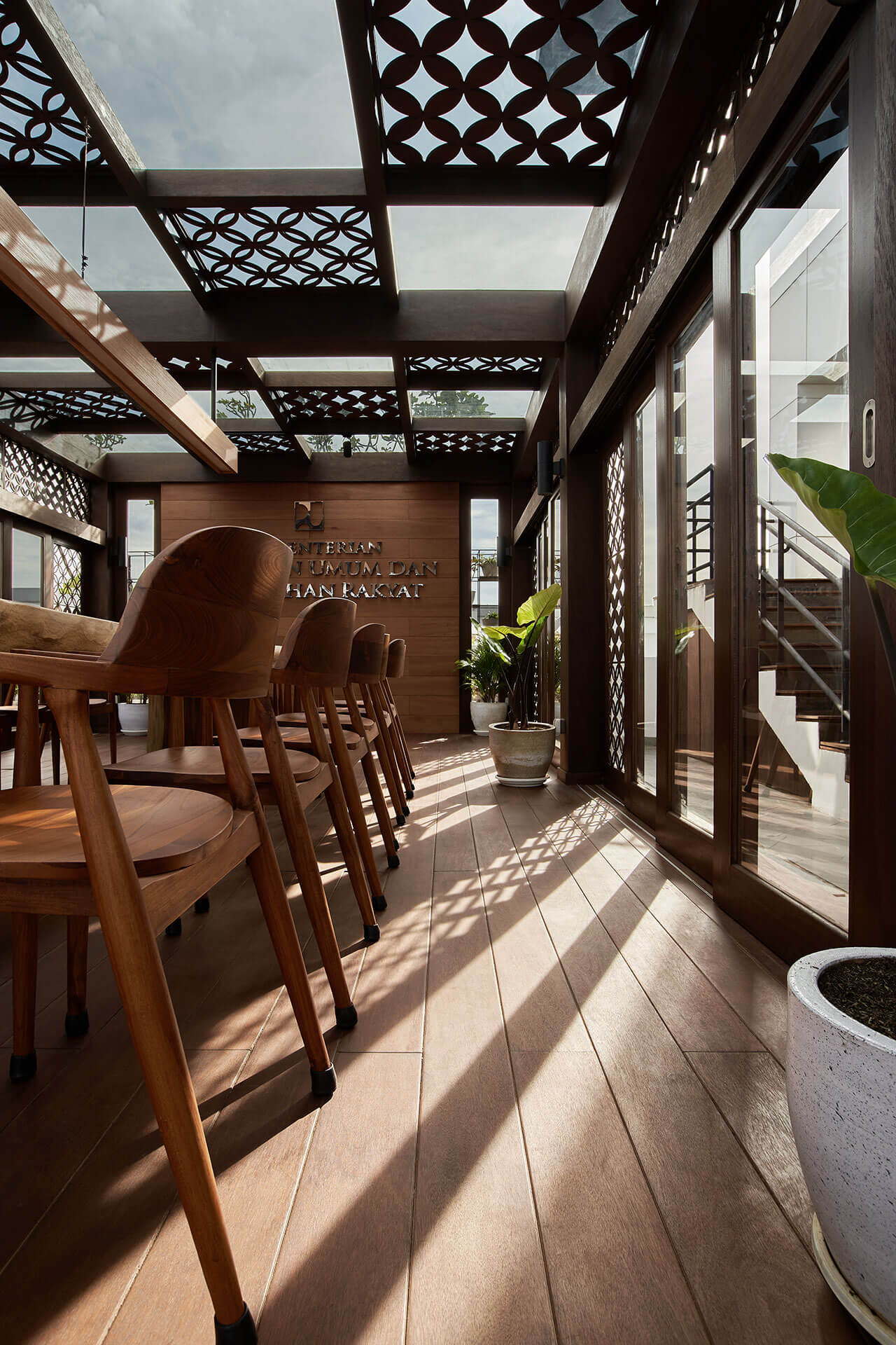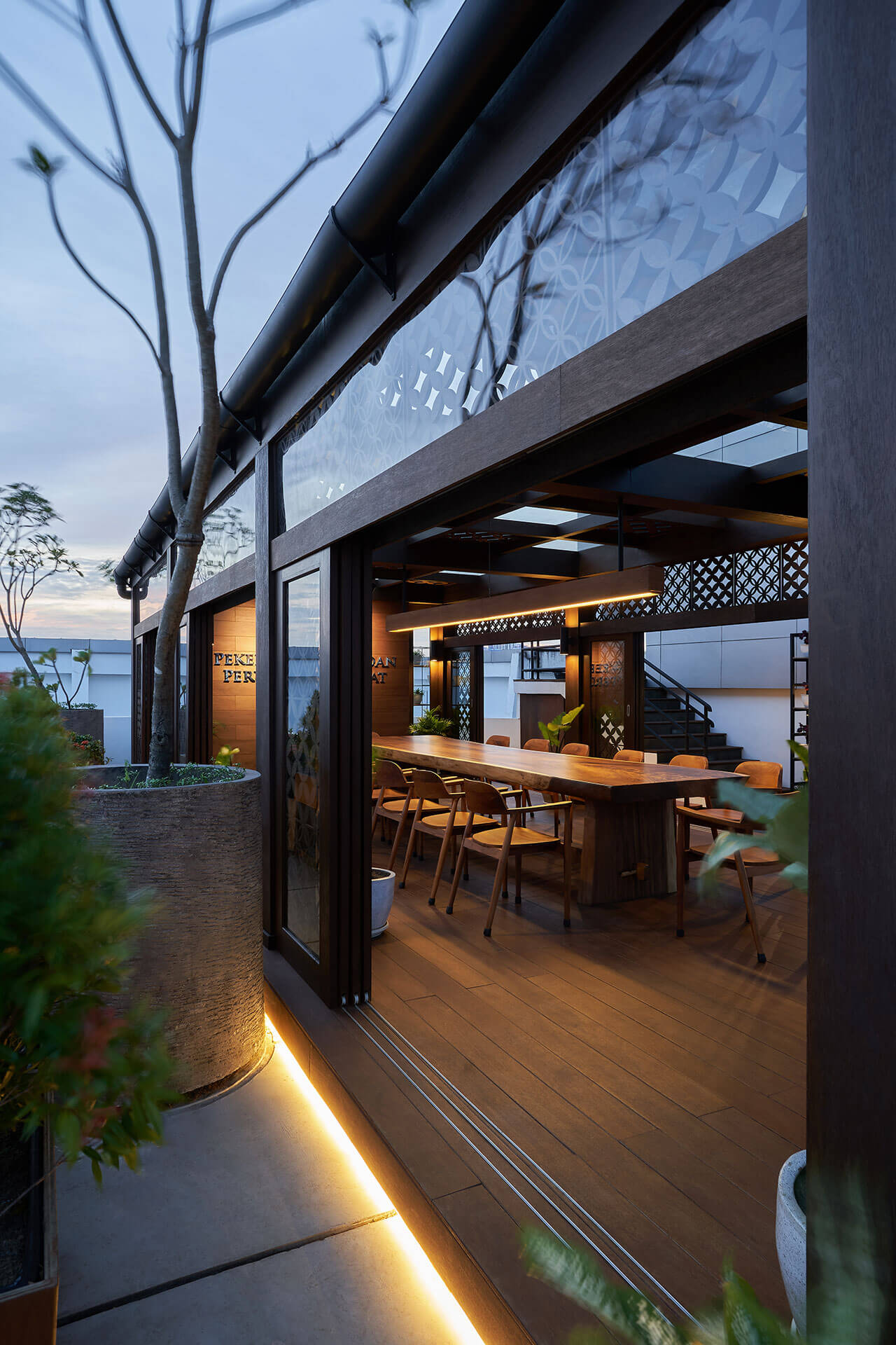 The project was completed within two weeks and highlights that wood can be easy to assemble and construct when using thoughtful modular design that starts from the manufacturing process itself. The wood used is strong and durable, with exceptional performance even when exposed to the humid tropical weather, varying temperatures, and rainfall in Jakarta. The space encourages the respect and appreciation of natural beauty, bringing natural materials into an urban context.